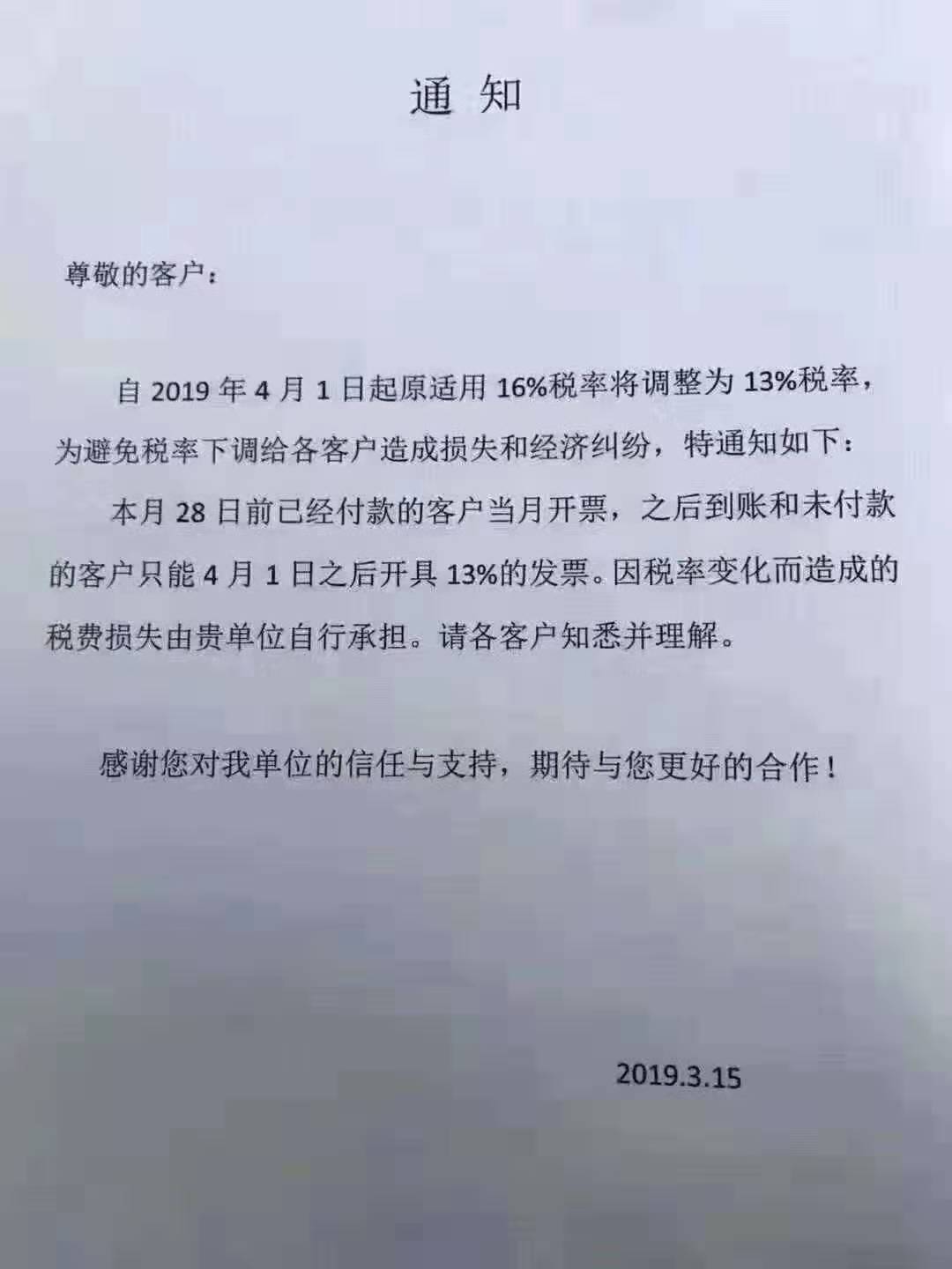 關(guān)于增值稅新稅率執(zhí)行時間,剛剛總理正式通知!增值稅稅率16%降13%,10%降9%,6%擴抵。4月1日起正式開始執(zhí)行!以后開發(fā)票要有大變化了。