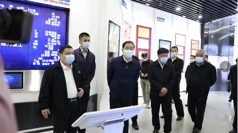 右上圖:湖北省副省長(zhǎng)趙海山(左二)、隨州市政府副市長(zhǎng)黃繼軍(左三)與程力汽車集團(tuán)董事長(zhǎng)程阿羅(左一)等負(fù)責(zé)人參觀程力專汽5G數(shù)字云展廳。 程力集團(tuán)高質(zhì)量發(fā)展的重大舉措引起了湖北省領(lǐng)導(dǎo)的高度重視,近日,趙海山副省長(zhǎng)一行領(lǐng)導(dǎo),在隨州市副市長(zhǎng)黃繼軍、曾都區(qū)區(qū)委姜晧,以及隨州市、曾都區(qū)政府職能部門負(fù)責(zé)人的陪同下,赴程力汽車集團(tuán)進(jìn)行專題調(diào)研,他首先參觀了程力汽車集團(tuán)5G數(shù)字云展廳,對(duì)程力集團(tuán)跨越式發(fā)展與對(duì)地方經(jīng)濟(jì)建設(shè)的貢獻(xiàn),表示了充分肯定;鼓勵(lì)企業(yè)以新技術(shù)、新材料、新工藝為重要抓手,以研發(fā)生產(chǎn)氫燃料動(dòng)力整車和新能源商用車暨應(yīng)急裝備產(chǎn)品轉(zhuǎn)型升級(jí)為突破口,一心一意謀發(fā)展,堅(jiān)定不移地走科技創(chuàng)新和綠色環(huán)?沙掷m(xù)發(fā)展之路。