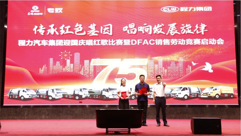 今日中國,欣欣向榮,江山如此多嬌,我們用拼搏的汗水,把捷報(bào)頻傳寫在美麗中國的答卷里;今日中國,人民豪邁勇毅前行砥礪前行,我們用實(shí)干成就夢(mèng)想,把溫暖人心的故事,寫在幸福中國的答卷里;今日中國,前程似錦,在實(shí)現(xiàn)中華民族偉大復(fù)興中國夢(mèng)的新征程上,我們昂首闊步,把日新月異的發(fā)展,寫在奮進(jìn)中國的答卷里;征途漫漫,惟有奮斗,讓我們一起唱響中國夢(mèng)祖國頌的歡歌,共同祝福偉大的祖國蒸蒸日上、和諧美好。 程力汽車集團(tuán)董事長程阿羅在盛會(huì)上致詞,向參加唱紅歌比賽的全體參賽隊(duì)員和與會(huì)代表,致以了親切問候!對(duì)東風(fēng)股份有限公司的領(lǐng)導(dǎo)嘉賓及東風(fēng)股份歌唱團(tuán)的成員,表示了衷心的感謝!同時(shí),程董祝福全球用戶及上游下游產(chǎn)業(yè)鏈供應(yīng)商、服務(wù)商,海外華人華僑、港澳同胞、臺(tái)灣同胞國慶節(jié)快樂,祝福祖國繁榮富強(qiáng),人民幸福安康。 東風(fēng)汽車股份有限公司營銷總部專用車事業(yè)部總經(jīng)理龔大為先生,作了熱情洋溢的講話。龔總與大家一起回顧了東風(fēng)公司與程力汽車集團(tuán),肩并肩攜手共同深耕專用汽車市場的發(fā)展歷程,描繪了共同開創(chuàng)美好未來新希望、新征程、新目標(biāo)。 程力汽車集團(tuán)與東風(fēng)股份已經(jīng)攜手并肩走過了16年,程力與東風(fēng)彼此同心同德,相互陪伴、相互學(xué)習(xí)、相互成就,東風(fēng)股份將始終堅(jiān)守“貢獻(xiàn)社會(huì),成就伙伴”的初心,與程力一路同行,共同推進(jìn)國內(nèi)專改行業(yè)的技術(shù)進(jìn)步,為專改行業(yè)的高質(zhì)量發(fā)展做出了卓越的貢獻(xiàn)。東風(fēng)股份作為中國汽車行業(yè)大型央企,為本次活動(dòng)特派東風(fēng)股份合唱團(tuán),獻(xiàn)唱《團(tuán)結(jié)就是力量》、《光榮與夢(mèng)想》。 DFAC以先進(jìn)的生產(chǎn)技術(shù),過硬的產(chǎn)品質(zhì)量,無憂的售后服務(wù),深得終端用戶的青睞;東風(fēng)股份營銷總部專用車事業(yè)部特級(jí)講師曹紹成老師,為啟動(dòng)會(huì)帶來東風(fēng)股份重磅產(chǎn)品推介。 在唱紅歌比賽環(huán)節(jié),程力汽車集團(tuán)公司共有10個(gè)演出團(tuán)隊(duì)參加了比賽,他們分別是:程力底盤供銷總公司參賽團(tuán)隊(duì)參賽歌曲為《我們走在大路上》、程力專用汽車股份有限公司參賽歌曲是《國家》、程力應(yīng)急裝備制造湖北有限公司參賽節(jié)目是《大中國》、程力特種車輛制造有限公司參賽歌曲是《今天是你的生日中國》、程力隨車裝備制造湖北有限公司參節(jié)目是《歌唱祖國》、程力新能源汽車制造股份有限公司參謀歌曲是《明天會(huì)更好》、集團(tuán)財(cái)務(wù)管理中心參賽的歌曲是《燈火里的中國》、善建金融服務(wù)有限公司參賽的節(jié)目是《我宣誓》、程力汽車制造有限公司演唱的歌曲是《我和我的祖國》、程力國際貿(mào)易有限公司參賽的歌曲是《沒有共產(chǎn)黨就沒有新中國》。 我們用歌聲追隨的光,是五角星的星光,星光所到之處,皆是華夏最美的模樣,愿以寸心寄華夏,且將歲月贈(zèng)湖海。在這個(gè)特別的日子里,讓我們發(fā)自內(nèi)心的真誠祝福,祝福偉大的祖國母親,生日快樂! 東風(fēng)股份營銷總部專用車隨州大區(qū)總監(jiān)王意翔先生為我們發(fā)布本次程力集團(tuán)&東風(fēng)股份底盤銷售勞動(dòng)競賽方案。 東風(fēng)汽車股份有限公司營銷總部專用車事業(yè)部總經(jīng)理龔大為(右三)、程力汽車集團(tuán)董事長程阿羅(左三)、程力汽車集團(tuán)黨委書記袁昌才(左二)、程力銷售總公司常務(wù)副總經(jīng)理袁美玲(左一)、程力汽車集團(tuán)總經(jīng)理朱武(右二)、東風(fēng)股份底盤事業(yè)部總經(jīng)理?xiàng)罱鹬ㄓ乙唬?/span>出席了“聚勢(shì)向前、東風(fēng)雄起”DFAC銷售勞動(dòng)競賽啟動(dòng)儀式。 集團(tuán)公司黨委書記袁昌才(左一)、集團(tuán)總經(jīng)理朱武(右二)、集團(tuán)銷售總公司常務(wù)副總經(jīng)理袁美玲(右一),分別為紅歌比賽三等獎(jiǎng)獲得者底盤公司領(lǐng)隊(duì)李曉蔓(左二)、新能源公司團(tuán)隊(duì)黃辰龍(左三)、汽車公司團(tuán)隊(duì)張弘(右三)代表頒獎(jiǎng)。 東風(fēng)汽車股份有限公司營銷總部專用車事業(yè)部總經(jīng)理龔大為先生(右一),為紅歌比賽二等獎(jiǎng)獲得者程力專汽公司領(lǐng)隊(duì)李濤(中)、財(cái)務(wù)中心團(tuán)隊(duì)王維維代表頒獎(jiǎng)。 程力汽車集團(tuán)公司董事長程阿羅先生為一等獎(jiǎng)獲得者善建金融全體成員共同頒獎(jiǎng),并合影紀(jì)念。 程力汽車集團(tuán)公司董事長程阿羅先生,為紅歌大賽特等獎(jiǎng)----《精神風(fēng)范獎(jiǎng)》獲得者東風(fēng)股份合唱團(tuán)代表頒發(fā)證書,并合影紀(jì)念。 程力汽車集團(tuán)中高層領(lǐng)導(dǎo)上臺(tái)集體合唱《程力之歌》,分享與祖國共榮光的豪邁與榮耀。 紅歌大賽的晚會(huì)現(xiàn)場,被這一抹整齊劃一的“中國紅”深深的打動(dòng)著,這一抹靚麗的顏色,不僅僅是我們獻(xiàn)禮祖國的這一份熱情,更是我們對(duì)祖國深深的眷念,我們跟隨著一曲又一曲經(jīng)典昂揚(yáng)、優(yōu)美奮發(fā)的旋律,深情