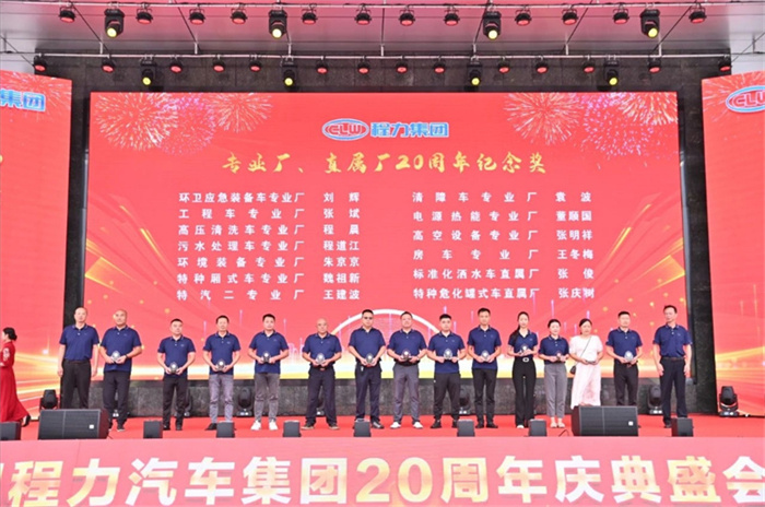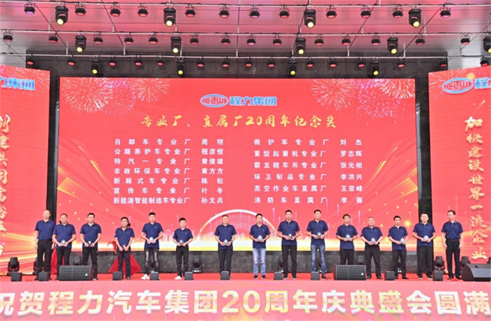 篇章一:9月15日上午之“程力二十年,攜手向未來”慶典表彰大會 ![]() ![]() “鑄專汽領(lǐng)軍品牌,建世界一流企業(yè)”;“程力二十年,攜手向未來”,2024年9月15日上午,金秋時節(jié)的炎帝神農(nóng)故里隨州,在程力(曾都)汽車工業(yè)園數(shù)字化智慧工廠文化廣場,陽光明媚碩果累累,鮮花綻放丹桂飄香;來自隨州市、區(qū)的領(lǐng)導(dǎo)嘉賓,全國各大主機廠、汽車零部件上下游供貨商、售后服務(wù)站,以及程力直營店、市外聯(lián)營單位的代表,以及程力各生產(chǎn)經(jīng)營單位的負(fù)責(zé)人、集團(tuán)公司15年至20年工齡忠誠敬業(yè)員工、光榮退休的元老,共1000余人,歡聚一堂喜氣洋洋,共同參加了集團(tuán)公司20周年盛大慶典,攜手同行的合作伙伴和友商,紛紛發(fā)來了賀信、賀函,先后發(fā)來賀信、賀電或祝福視頻。 程主席致詞贊揚道:程力人二十載風(fēng)雨兼程,二十載砥礪奮進(jìn),全體員工敢于創(chuàng)新勇立潮頭,心無旁騖專注汽車制造,不忘初心、肩負(fù)使命、奮斗不止,程力人是“程力精神”的創(chuàng)造者、弘揚者,是公司發(fā)展的建設(shè)者和主人翁;二十年來,程力從無到有、從弱到強,這一發(fā)展壯大的絢麗篇章,記載了程力人為中國專汽之都增光添彩的奮斗歷程;在20年的開拓征程中,程力人群策群力、攻堅克難,打贏了一個又一個攻堅戰(zhàn),在汽車制造和應(yīng)急裝備領(lǐng)域,深耕沃土,實現(xiàn)了跨越式的高速增長,奠定了專汽領(lǐng)軍地位,豎立了行業(yè)豐碑,程力品牌馳名中外、享譽世界,老一輩程力人為此付出了卓越的貢獻(xiàn)。