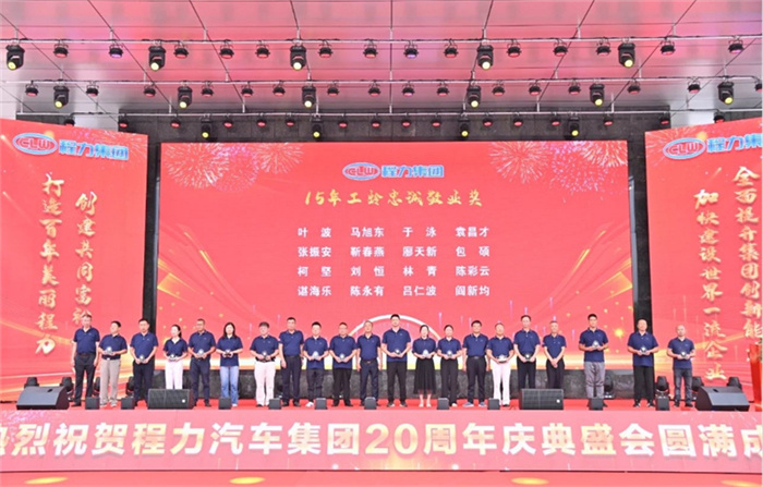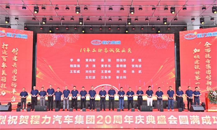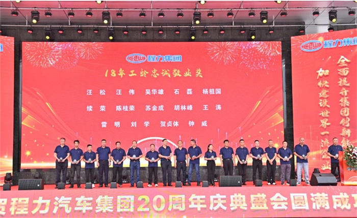 北汽福田汽車股份有限公司Y事業(yè)部總裁宋洋先生在致辭中,也全面回顧了福田與程力緊密合作的深厚友誼,對程力20年來的發(fā)展成就表示充分的肯定和由衷的贊許。北汽福田汽車股份有限公司助力程力在小卡、微卡實現(xiàn)行業(yè)引領(lǐng),打造了標(biāo)桿市場,市場份額達(dá)到70%,推動了細(xì)分市場的發(fā)展與創(chuàng)新;新冠疫情期間,江鈴汽車股份有限公司鼎力馳援、力保醫(yī)療救護(hù)車交付7000余臺,收到了國務(wù)院來信表揚。 江鈴汽車股份有限公司副總裁兼江鈴汽車銷售有限公司總經(jīng)理劉讓坡先生在致辭中,盤點了江鈴與程力兄弟般情誼的合作佳話。 除上述主機廠代表發(fā)言外,程力與一汽解放、東風(fēng)商用車、安徽江淮、長安凱程、南京依維柯、陜汽集團(tuán)、東風(fēng)隨專、上汽大通、成都壹為、三環(huán)汽車等合作單位,先后聯(lián)袂打造了航天醫(yī)監(jiān)醫(yī)保車、應(yīng)急救險車等眾多的成功合作案例,正是各位底盤合作單位的鼎力相助,我們將天馬行空的設(shè)計理念轉(zhuǎn)化為馳騁路面的各類專用車輛,讓每一款改裝作品都閃耀著獨特的光芒,成為行業(yè)內(nèi)的佼佼者。 襄陽達(dá)安汽車檢測中心有限公司副總經(jīng)理齊剛先生致辭。程力公司自建廠以來,與襄陽達(dá)安檢測中心展開合作。作為國家級的檢測機構(gòu),襄陽達(dá)安在公告、環(huán)保、營運等檢測認(rèn)證,以及檢測場地、專家團(tuán)隊等諸多方面,都給予了我們強有力的支持,特別是今年襄陽達(dá)安隨州專用汽車和應(yīng)急裝備試驗場投入運營,更是助力隨州汽車企業(yè)的發(fā)展。程力一路走來,離不開襄陽達(dá)安的支持和幫助,在此對襄陽達(dá)安檢測中心表示衷心的感謝! 賡即,集團(tuán)公司董事局主席程道國、董事長程阿羅向來自全國參加慶賀的主機廠代表贈予了程力20年“合作紀(jì)念獎”獎?wù)隆?br /> 程力汽車集團(tuán)副總經(jīng)理倪文進(jìn)(左)向檢測機構(gòu)襄陽達(dá)安汽車檢測中心有限公司、中汽研汽車檢驗中心(武漢)有限公司代表,贈予了程力20年“合作紀(jì)念獎”獎?wù)隆?br /> 民族品牌,唱響世界。程力不僅是中國的程力,也是世界的程力;程力集團(tuán)在湖北省建有五大核心制造基地,在立足本地的同時,我們用市外聯(lián)營模式走向全國走向世界,已成為行業(yè)的楷模和榜樣。這一成就典范的背后,離不開程力市外聯(lián)營單位的突出貢獻(xiàn),我們的市外聯(lián)營合作伙伴,憑借出色的業(yè)務(wù)成果、創(chuàng)新的合作模式,以及深遠(yuǎn)的對外影響力,在眾多單位中脫穎而出,程力集團(tuán)總經(jīng)理朱武(右)向全國6家市外聯(lián)營單位的代表頒發(fā)了“程力20周年紀(jì)念獎”獎?wù)隆?br /> 程力集團(tuán)銷售總公司常務(wù)副總經(jīng)理袁美玲(左)向全國共9家服務(wù)站及直營店代表頒發(fā)了“程力20年紀(jì)念獎”獎?wù)。這些在奮戰(zhàn)銷售第一線的直營店,以及售后領(lǐng)域默默耕耘的服務(wù)站,他們用不懈的努力和專業(yè)的態(tài)度贏得了口碑,他們辛勤的付出,為程力產(chǎn)品的銷售與服務(wù)做出了巨大貢獻(xiàn)。 二十年比肩同行,二十年披星戴月,二十年同舟共濟(jì),我們更要感恩程力專業(yè)廠、直屬廠的辛勤付出和默默奉獻(xiàn)。程力集團(tuán)黨委書記袁昌才、總經(jīng)理朱武,為默默耕耘8年以上的生產(chǎn)經(jīng)營單位共負(fù)責(zé)人頒發(fā)了“程力20周年紀(jì)念獎”獎?wù)隆?br /> 集團(tuán)公司的發(fā)展離不開最早的一批創(chuàng)業(yè)者,雖然他們已經(jīng)退休,但仍然無時無刻關(guān)注著集團(tuán)的發(fā)展。他們在公司工作都超過15年,為集團(tuán)的發(fā)展作出了巨大的貢獻(xiàn),集團(tuán)董事局常務(wù)副主席程國強為光榮退休忠誠敬業(yè)獎老員工頒發(fā)了獎?wù)?/span>。 當(dāng)我們攜起手來,總有溫暖的臂膀在支撐;一代一代程力人薪火相傳,兢兢業(yè)業(yè),開拓創(chuàng)新,奮發(fā)圖強,鑄就了今日輝煌,程力汽車集團(tuán)公司為15年至18年工齡獲得忠頒發(fā)了誠敬業(yè)獎。 集團(tuán)董事局常務(wù)副主席程國強、集團(tuán)董事局副主席郭傳文、集團(tuán)董事局副主席黃尚財、集團(tuán)董事局委員廖明洲、集團(tuán)董事局辦公室主任楊祖國為獲獎人員頒獎,并合影留念。 集團(tuán)董事局主席程道國、集團(tuán)董事長程阿羅為19年及20年工齡的忠誠敬業(yè)獎獲獎?wù)哳C獎,并合影留念。頒獎現(xiàn)場一陣陣熱烈的掌聲,表達(dá)了對程力忠誠敬業(yè)的員工們表示衷心的感謝,正是有了廣大員工在公司忠誠堅守,程力才有一代一代的賡續(xù)傳承和輝煌成就! 二十年來,程力堅持創(chuàng)新驅(qū)動,不斷推進(jìn)技術(shù)進(jìn)步和產(chǎn)品升級。從最初的單一產(chǎn)品,到如今涵蓋各類專用汽車、新能源汽車及關(guān)鍵零部件的完整產(chǎn)業(yè)鏈,程力汽車集團(tuán)已成為國內(nèi)領(lǐng)先的綜合性汽車產(chǎn)業(yè)集團(tuán)。為更好詮釋企業(yè)文化、企業(yè)發(fā)展方向,站在新的歷史起點上,讓企業(yè)品牌享譽世界,我們將發(fā)布程力集團(tuán)的國際化品牌logo,有請程力汽車集團(tuán)黨委書記袁昌才,帶領(lǐng)余操、呂仁波、廖朝鳳、陳垚東、梁沙艾、陳永有等6位國際貿(mào