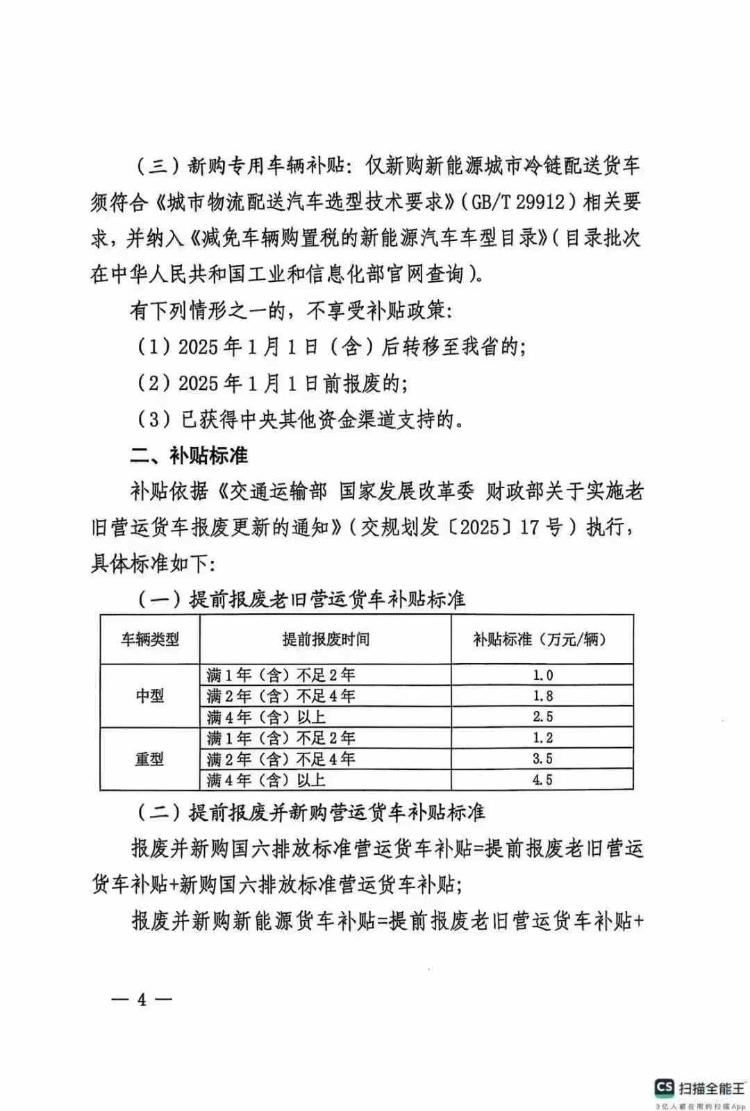 2025年老舊運(yùn)營(yíng)貨車報(bào)廢以舊換新政策補(bǔ)貼實(shí)施細(xì)則