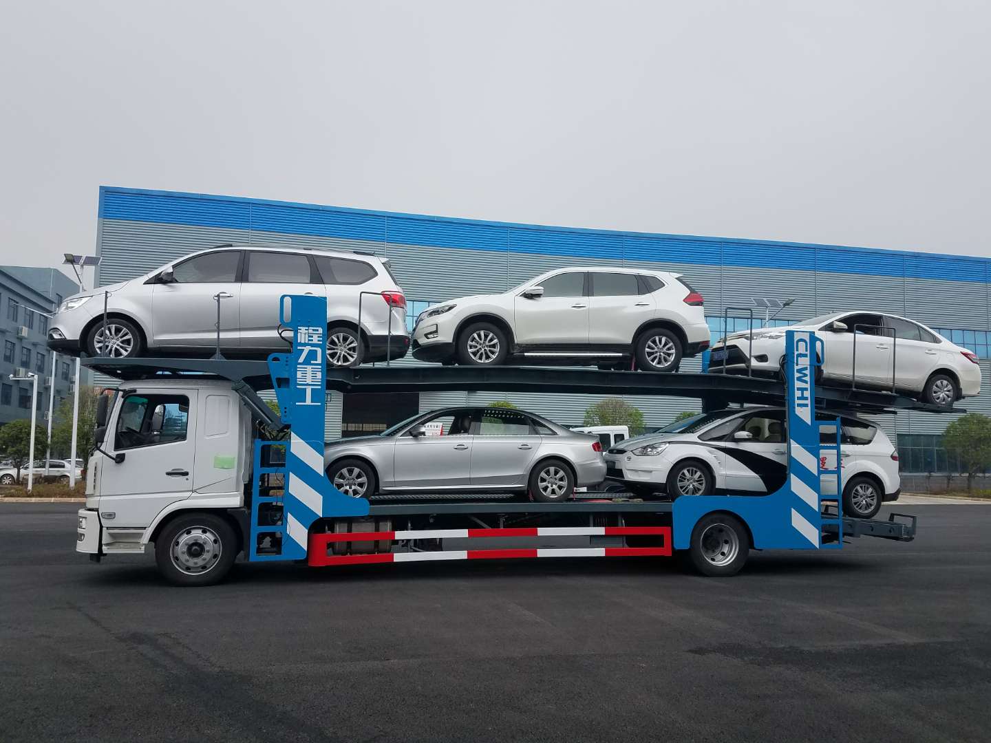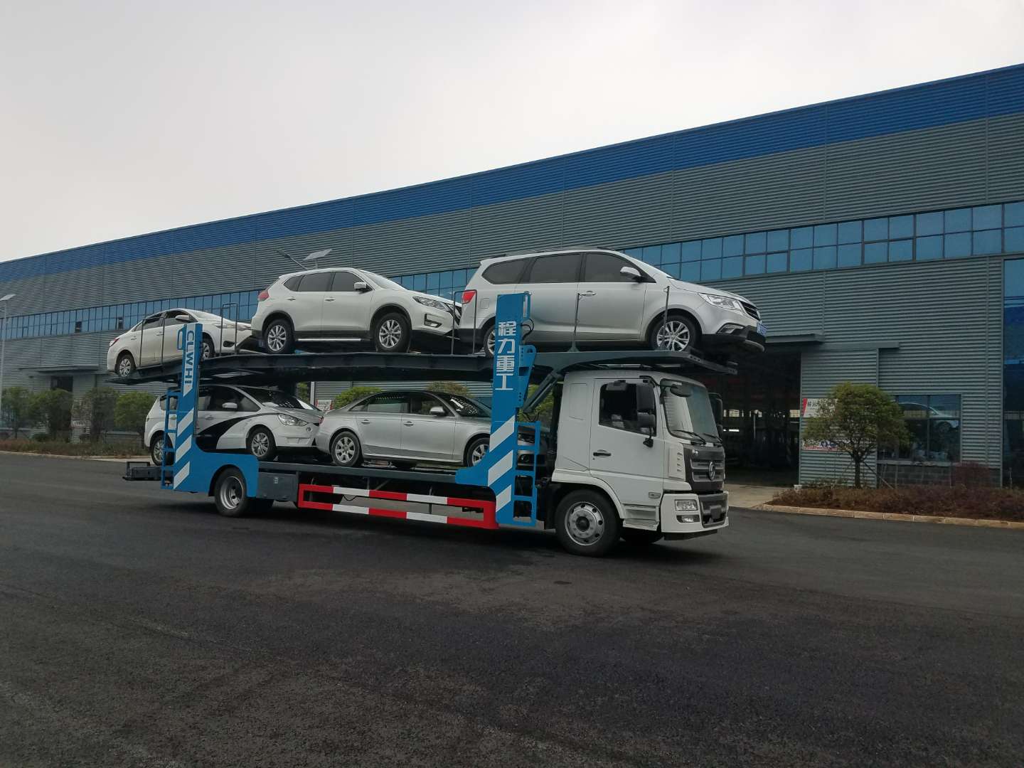 湖北程力陜汽軒德轎車運(yùn)輸車(轎運(yùn)車)詳細(xì)資料 湖北程力專用汽車股份有限公司積極響應(yīng)國家新GB1589-2016法規(guī),融合歐美成熟技術(shù)優(yōu)化開發(fā)的“程力威”牌轎運(yùn)車投放市場(chǎng)。替代老式不合格的單、雙 排轎運(yùn)車。產(chǎn)品特點(diǎn):1、裝載量大,一次性裝載5位4.5米以下轎車,前后分離,前車可獨(dú)立運(yùn)營2、獨(dú)特液壓設(shè)備,液壓缸舉升實(shí)現(xiàn)各裝車平臺(tái)的升降和 定位。3、行駛更安全,符合最新GB1589-2016標(biāo)準(zhǔn),底盤重心低,彎道通過性好,燃油更少。 整車采用優(yōu)質(zhì)武鋼Q235A/Q345B型鋼制作. 湖北程力公司自有生產(chǎn)車間和生產(chǎn)資質(zhì),專業(yè)制造銷售車輛運(yùn)輸式半掛車,6車位8車位中置軸轎運(yùn)車,歡迎來廠參觀洽談。 車型特色: