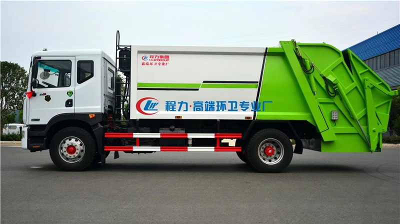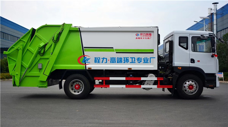4、智能操作系統(tǒng)采用西門子PLC一鍵循環(huán),駕駛室內(nèi)與車外均有電控操作盒,后尾部左右各帶一個操作盒。駕駛室室內(nèi)卸料時操作,外部裝料時操作,另帶有一套手動應(yīng)急操作,同時設(shè)有電子自動油門,不在需要人工加減油門來調(diào)節(jié)工作速度,一個司機(jī)就可以完成全部操作,也可減少或避免野蠻加油而導(dǎo)致液壓系統(tǒng)故障。 湖北程力汽車壓縮垃圾車國六東風(fēng)D9壓縮垃圾車多方位圖片展示: