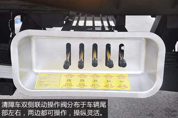 江淮平板一拖二清障車雙側(cè)聯(lián)動操作閥分布于車輛尾部左右,兩邊都可操作,操縱靈活,視野范圍廣,減少了后期道路使用中的局限性。