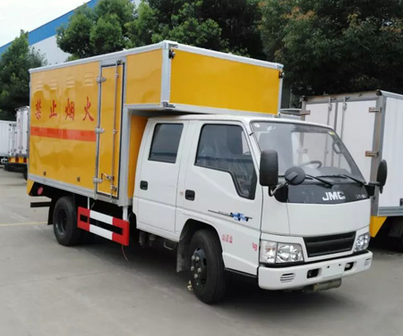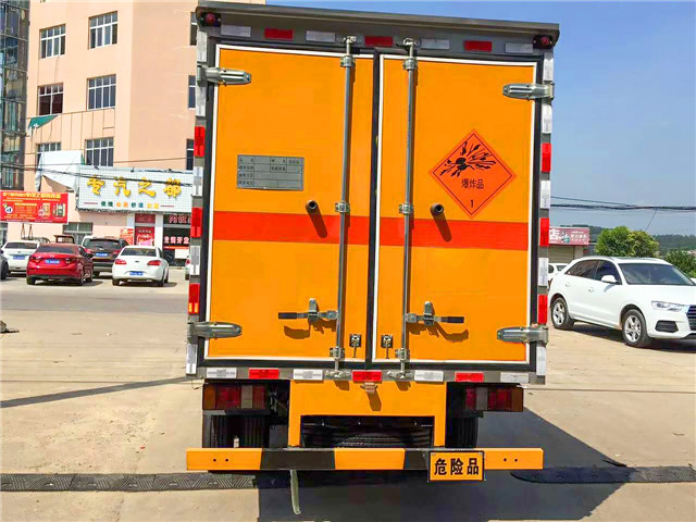 1、爆破器材運輸車底盤的型號可分為:東風、江鈴、江淮、奧鈴、時代、歐曼、慶鈴、解放等。驅動形式可分為:雙驅動和四驅動,按額定載質量有0.5噸—9.9噸(國防科工委要求最大上戶噸位不超過10噸)。 2、廂體分為兩部分:A:運輸炸藥;B:運輸雷管(抗暴容器);C:炸藥,雷管同時運輸(廂體必須隔倉,分倉運輸,加裝抗爆容器)。廂體為雙層金屬骨架結構,外部為冷扎鋼板,內壁采用鋁合金板蒙面,夾層為隔熱阻燃材料填充。設置對開門,如需安裝抗暴容器則增開側門,側壁設有防雨功能自然通風窗口,以使廂內外空氣流動,廂體內部做防靜電處理,廂體底部與廂內前部鋪有阻燃導靜電膠板,并與底盤等電位連接,通過車輛后端的導靜電裝置與大地相連,可防止靜電火花的產生和車輛靜電及時釋放,提高爆破器材運輸車的安全性。廂體內部前面和側面裝有固定拉環(huán),與捆綁帶使用捆綁貨物以避免移動,保證安全。 3、 感煙報警器:是感測車廂內火情的專用裝置,安裝在車廂內頂部,并與駕駛室內報警裝置連接,當有火情煙霧出現(xiàn),在駕駛室進行蜂鳴報警通知駕駛員,保證及時消除險情。 4、防盜報警器:為了保證安全,在車廂后方和側面開設有門,在各門器框上方安裝有門磁開關報警器(根據用戶要求選裝防盜監(jiān)視器。行車記錄儀等)當廂門被打開時,駕駛室內的蜂鳴器發(fā)出報警聲音,不使用時可將駕駛室內的控制開關關閉?杀WC在行駛過程中,整車始終處于受控狀態(tài)。 5、整車發(fā)動機排氣裝置采用前置式,并安裝有排氣火花熄滅器(防火罩),防止熱源對爆炸物產生不良影響。 6、底盤上裝有兩條拖地導靜電膠帶,廂體外側安裝示廓標記燈以及手提滅火器等安全裝置。 7、車身顏色為黃色,并有“嚴禁煙火”和“爆”字樣,貼有反光標識。 |