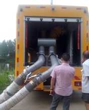 3、發(fā)電機組 發(fā)電機組功率選配,120KW,額定頻率50HZ,額電壓230/400V,康明斯發(fā)動機。調速方式:電子調速。啟動電瓶,電瓶總閘。 4、超輕型高速不銹鋼潛水泵 配4臺便攜式超輕型高速不銹鋼高頻率防腐蝕潛水泵,總流量可達1600立方每小時,單臺水泵功率為22KW,揚程為8M,單臺水泵配直徑為200MM消防式水管2根,每根長度為25米。 5、接地裝置 接地樁和接地電纜線,連接車箱內專設的接地樁頭,連接方便,在機組工作時,接地線連接,保護作業(yè)安全。機電設備有嚴密的防漏電保護措施。在作業(yè)中,整車接地線,采用低壓接地線,配備可拆。卸式接地針,直徑不小于10mm。 6、控制系統(tǒng) 采用智能控制系統(tǒng),集中控制,中文界面,具有自動障礙保護功能,選用優(yōu)質電器元件,性能穩(wěn)定,安全可靠。 7、抽水管 水泵進水口為一分兩個八寸,抽水管采用八寸美國進口透明水管,質量輕,拿取方便,配3.5米長水管4根。接頭采用東方式快速接頭,使用方便,密封效果好;每個進水口配置鴨嘴式接頭,實現(xiàn)低水位抽吸作業(yè)。各進水口配90°彎頭。 8、排水管 水泵出水口一分四個5寸,每個出水口66米出水軟管(33m/卷,),軟管為快速接頭連接,操作方便,并在接頭處有防松保險裝置,安全可靠。水管直徑125CM水管材質為雙面PVC,耐磨,耐壓10kg,快速接頭為凸輪接頭。 9、箱體 廂體外部鋼材為優(yōu)質冷軋鋼板,內襯優(yōu)質冷軋鋼板折彎骨架,工藝先進,強度牢固。廂體為全密封結構,具備運輸、防雨、防腐、防火、防銹要求。車廂尾部安裝鋁合金卷簾門。發(fā)電機組進排風消聲處理,消聲器做降噪處理。車廂水泵兩側設開門,發(fā)電機進風口和排風口防雨百葉窗,工作門下,尾部設有隱藏式抽拉梯,與車廂底板框架連接。 10、外供電源 箱內配備滿足5KW功率輸出、電壓380V插座1只,220V通用插座1只。 11、內部照明 車廂內飛利浦LED照明燈。在啟動發(fā)電機組時采用發(fā)電機組供電,發(fā)電機組停機時采用車輛直流電瓶電源供電,可實現(xiàn)便捷切換。 12、液壓支撐 車輛安裝四只液壓支撐腿,可在駐車狀態(tài)均分車輛靜壓,保護車輪及彈簧鋼板。選用進口優(yōu)質意大利多路閥組,液壓支撐缸采用進口密封件,單缸靜載荷5噸,加裝雙向液壓鎖。 13、外部照明燈 車廂后頂部安裝升降照明燈,燈具功率150×2=300W;光源形式 LED燈(二聚光、二泛光);燈桿舉起高度1800mm水平旋角 360°;垂直旋角 330 |