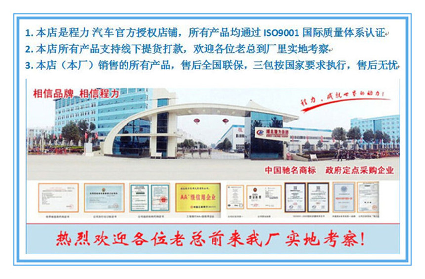 廂體結(jié)構(gòu):采用聚酯濕法制板工藝和玻璃纖維加強(qiáng)不銹鋼立柱框架結(jié)構(gòu),使用國際上最為先 進(jìn)的第五代全封閉聚氨酯板塊粘接法。 廂板材質(zhì):內(nèi)外壁板選用國內(nèi)優(yōu)質(zhì)的機(jī)制2.2mm玻璃鋼;中間保溫材料選用厚進(jìn)口聚氨酯; 廂體厚度80mm 門厚度80mm;底板上面整體鋁花紋板,下面彩鋼板,中間進(jìn)口聚氨酯; 配件:廂體周邊2.5mm鋁合金包邊,不銹鋼包角,不銹鋼門鎖,防碰膠皮4塊,不銹鋼門框, 不銹鋼合頁,箱內(nèi)節(jié)能照明燈。 制冷機(jī)組:冷藏機(jī)組知名的國產(chǎn)品牌凱利,漢雪或華泰頂置式機(jī)組,廂體溫度0上5度至0下18度(可選配進(jìn)口機(jī)組韓國韓亞,美國開利冷王等)。 駕駛室可視---車廂溫度監(jiān)視儀、溫度控制器以及溫度打印機(jī)等。(根據(jù)客戶需求可選裝) 整車出具:正規(guī)底盤合格證,正規(guī)整車合格證,正規(guī)車輛購置稅發(fā)票,全國統(tǒng)一機(jī)動車,隨車工具,車輛質(zhì)保手冊,車輛使用說明書,全國服務(wù)站名錄等。讓您上戶無憂,方便快捷! 冷藏車廂體制作技術(shù): 1、分片拼裝的“三明治”板粘接式,目前國內(nèi)較大的冷藏車生產(chǎn)企業(yè)都采用這種技術(shù),利用這種技術(shù)生產(chǎn)的冷藏車隔熱性能較高。 2、分片拼裝的注入發(fā)泡式。 3、整體骨架注入發(fā)泡式。 4、真空吸附式粘貼冷藏機(jī)組分類:冷藏機(jī)組分為非獨(dú)立制冷機(jī)組和獨(dú)立制冷機(jī)組。國產(chǎn)機(jī)組與進(jìn)口機(jī)組等。一般車型都采用外置式冷機(jī),少數(shù)微型冷藏車采用內(nèi)置式冷機(jī)。對于溫度要求較低的冷藏車,可采取廂體內(nèi)置冷板(功能相當(dāng)于蒸發(fā)器) 要想廂體的保溫效果好,自然是隔熱層材料的選擇了。 售后及維護(hù)說明: (2)建立定期回訪制度。每年夏季、冬季公司售后服務(wù)人員開展“夏季送綠蔭”和“冬季送溫暖”活動,保證售出車輛的維修的保養(yǎng)。 (3)冷藏/保溫廂體保修一年(行駛里程不超過25000公里)。在保修期內(nèi),由于材料、制造、裝配方面所造成的損壞,由本公司負(fù)責(zé)更換與修理。 (4)保修范圍內(nèi)不包括正常磨損,對于不按照說明書使用以及交通事故,人為破壞,本公司不予保修。到本公司修理,由用戶承擔(dān)修理費(fèi)用。 (5)開通24小時服務(wù)熱線,對用戶提出的維修要求實(shí)行4小時內(nèi)答復(fù),24小時到達(dá)現(xiàn)場服務(wù)。(邊遠(yuǎn)地區(qū)72小時到達(dá)現(xiàn)場服務(wù)) (6)超過保修期的廂體,需更換配件或維修,我公司均能滿足配件供應(yīng)和及時的服務(wù),無償派技術(shù)人員進(jìn)行維修,只收取原材料成本費(fèi)。 備注:產(chǎn)品信息、圖片、參數(shù)等,僅供用戶選購參考,對冷藏車有特殊要求的請?zhí)崆案嬷?/span> 我們的授權(quán)和榮譽(yù)![]() 我們的冷藏車給您的貨物一個清涼的世界 ![]() 我們的細(xì)節(jié)展示 ![]() ![]() 訂購程力專汽,只需輕松5步確定需求銷售經(jīng)理隨后會對您進(jìn)行電話訪問咨詢,了解您的購車需求,并根據(jù)您的實(shí)際情況推薦適合您的方案和產(chǎn)品,并發(fā)電子版產(chǎn)品資料配置,方便您進(jìn)行參考和定奪。 簽訂合同一旦您確定購車方案,雙方會簽訂訂購合同。 廠家生產(chǎn)交付定金后,我們數(shù)萬名員工將開始為您制造高品質(zhì)的產(chǎn)品。 滿意交付您可以選擇到廠家自提汽車,或者選擇送車服務(wù)。如果您選擇廠家自提,您可以享受我們星級的售中服務(wù)。 |