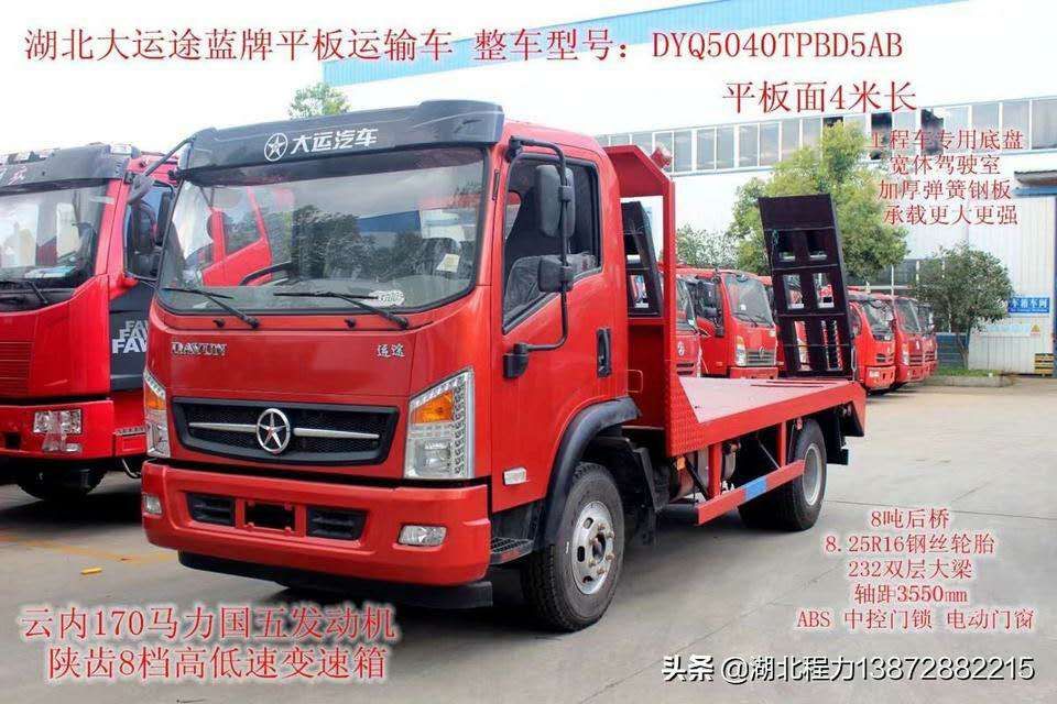 成都大運(yùn)藍(lán)牌挖機(jī)平板運(yùn)輸車配置圖片(云內(nèi)170馬力),廠家參考價(jià)格:12萬元