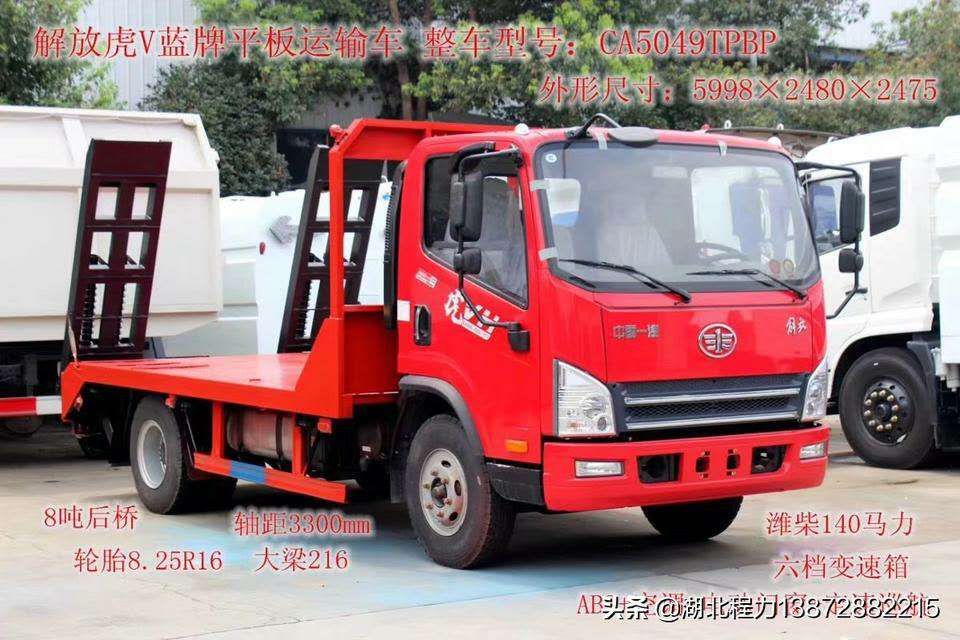 解放虎V藍(lán)牌挖機(jī)平板運(yùn)輸車配置圖片(濰柴140馬力)廠家參考價(jià)格11.9萬元