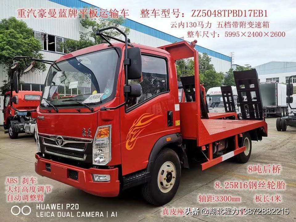 重汽豪曼藍(lán)牌挖機(jī)平板運(yùn)輸車配置圖片(云內(nèi)130)廠家參考價(jià)格;10.2萬元