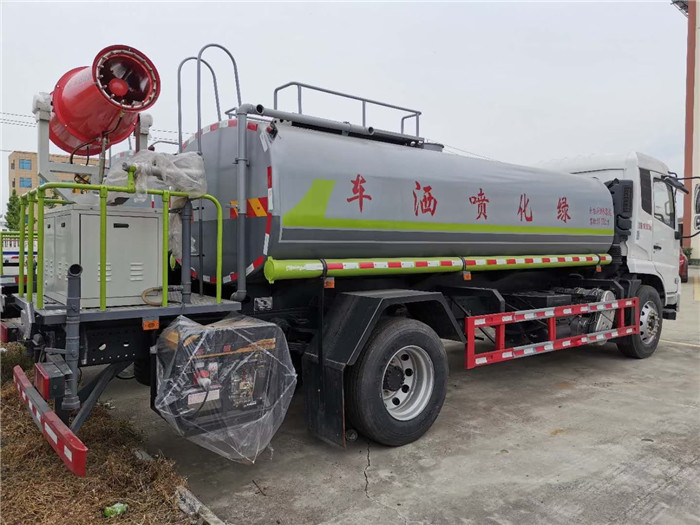 東風天錦12噸30米霧炮車亮點: 底盤配置:采用原裝東風天錦底盤,軸距4700或者5000,國六康明斯210馬力發(fā)動機,東風6檔變速箱,900R20鋼絲胎帶備胎,氣剎,斷氣剎,方向助力,離合助力,原裝空調,電動玻璃,中控鎖,東風原廠4通道ABS。改裝配置:采用4mm國標碳鋼板縱縫焊接一次卷制成型,罐內設防浪隔板防止水浪沖擊,有效容積12-14立方可選,配60/90大功率灑水泵,管道采用大口徑無縫鋼管+大口徑球閥,標配14米前沖,后灑側噴功能,35米平臺水炮,后平臺加裝30米霧炮機及8.5KW柴油專用副發(fā)電機。 霧炮機參數:射程30米,風機電機3KW,水泵電機3KW,噴霧流量20L/min,工作壓力1.5-3.5MPa,霧粒度50-150微米,360°水平旋轉,-10~45°上下俯仰角度,手動+遙控控制,霧炮機尺寸:1300*700*1600mm 湖北程力國六東風天錦12方-14方綠化噴灑車|霧炮抑塵車|灑水車程力威牌CLW5161GPS6WL型綠化噴灑車CLW5180GPSE6型綠化噴灑車圖片價格: