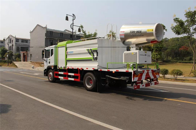 底盤配置:采用國(guó)六東風(fēng)新款多利卡D9系列底盤生產(chǎn),軸距4500mm,底盤發(fā)動(dòng)機(jī)為康明斯230馬力,295真空胎,東風(fēng)6檔變速箱,國(guó)六排放標(biāo)準(zhǔn),罐體容積:10立方,罐體鋼板采用Q235碳鋼鋼板,采用方形瓦楞設(shè)計(jì),外觀大氣靚麗,后工作平臺(tái)加裝高效率車載式風(fēng)送噴霧機(jī),噴藥炮霧化效果好,可遠(yuǎn)程噴霧,東風(fēng)多利卡D9抑塵車帶前沖后灑、側(cè)噴、平臺(tái)高炮、自流閥及消防接頭各1個(gè)、標(biāo)配億豐泵或金龍泵,可選裝50-100米噴霧機(jī)。 上裝配置:罐體容積10立方,罐體為方形罐,罐體內(nèi)部做防腐,主管路鍍鋅,帶前部沖洗路面噴灑裝置、后部扇形降塵噴灑裝置,兩側(cè)面噴灑裝置,帶后部工作平臺(tái)、平臺(tái)上安裝綠化灑水炮(炮噴射形狀可調(diào)),可調(diào)直沖狀、大雨、中雨、毛毛雨,可連續(xù)調(diào)節(jié),采用中聯(lián)唯佳大流量水泵,消防接口可自流,音樂喇叭,50-100米噴霧機(jī)組。 噴霧機(jī)配置:TDM-M08型,可無(wú)線操作,及手動(dòng)操作。根據(jù)需求選配的霧炮機(jī)霧化距離在60-120米不等(靜風(fēng)室內(nèi)距離),實(shí)際射程:(霧化射程會(huì)受濕度、溫度、風(fēng)速等各方面天氣因素的影響,另外天氣干燥地區(qū)一部分在空中被蒸發(fā)掉)。CLW-100型60米,副發(fā)電機(jī)組功率50(Kw),風(fēng)機(jī)功率15(Kw),不銹鋼多級(jí)離心泵功率5.5(Kw)。100米無(wú)線操作,霧化距離60米(靜風(fēng)室內(nèi)距離)實(shí)際射程:(霧化射程會(huì)受濕度、溫度、風(fēng)速等各方面天氣因素的影響,另外天氣干燥地區(qū)一部分在空中被蒸發(fā)掉)。 湖北程力國(guó)六東風(fēng)D9方罐抑塵車程力威牌CLW5180TDYD6型多功能抑塵車圖片價(jià)格: