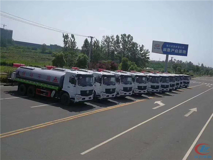 寧夏宸宇環(huán)保科技批量采購10臺(tái)東風(fēng)后雙橋抑塵車發(fā)車